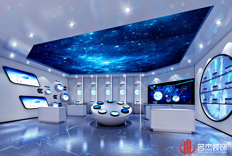 本案例厂房主要是展厅为主,因为客户产品是机电等,所以根据现代科技结合更加突出产品的优势及要点。设计理念只在结合展厅的规划定位创造运动形式的空间概念,把空间感、立体感、运动感、节奏感的设计表达结合产品展示切入主题定位。