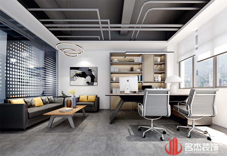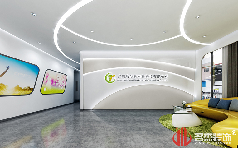 前台运用大量的不规则图形和线条来确定整体的时尚现代风格,勾勒出一种不规则的美。整个办公室装修设计风格里面也有所体现,突出企业文化,新材料公司办公室装修就是要打破常规,不走寻常路。