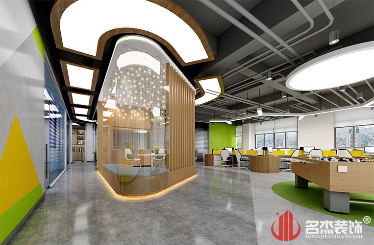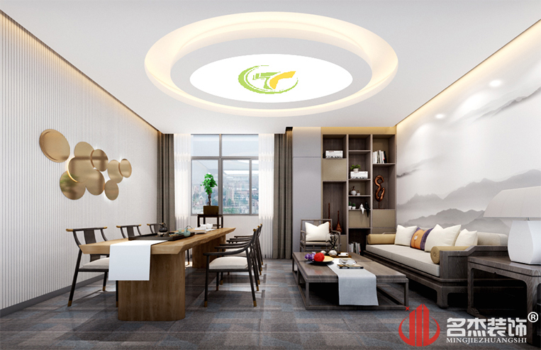 运用大量的不规则图形来营造出空间大气感,通过加入大型的光源来使得整个空间显得格外明敞。部分空间通过加入玻璃隔断,来实现空间可视性。接待室更是结合时下最流行的中式元素,让整个设计的档次提高了不少。而且把企业的logo加入到整体的设计当中,使得企业文化的体现无处不在。