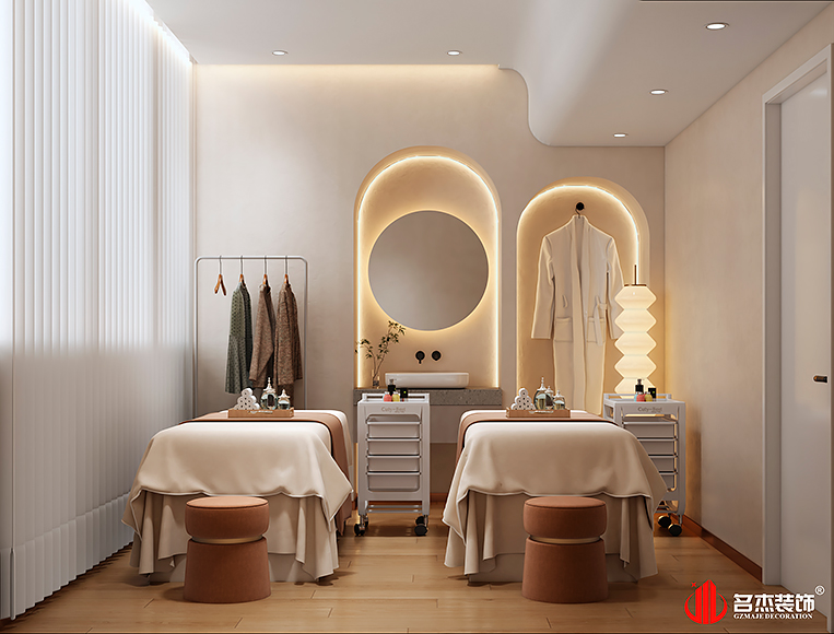 奶油风格融入到现代轻奢的风格里,也让空间散发出不一样的特色,更符合现代流行的趋势。设计团队也在整体空间中加入一些造型,增加空间的利用率的同时,也让空间有了更好的设计层次感。同时在灯光的运用上面,也是参考到现在流行的方式,运用大量的灯光来营造出一种氛围感,让更多的人更愿意留在这个空间,进行打卡拍照#美容装修设计#