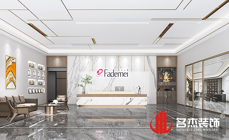本次来到的是一家专注于高品质护肤、洗涤日化及家居清洁产品的 研发、生产、销售,是一家以消费者为中心,以现代化科技为引擎,具备自主研发、科技创新能力的大型现代化集团企业。该企业是主营化妆品为主的,对此设计团队采用时尚流行加上轻奢的元素到整体办公室装修设计当中。将展厅作为这次展示企业实力和设计团队实力的重点区域,在展厅中加入各种新元素,弧形元素更是信手拈来的,让空间的设计感更加有层次感。