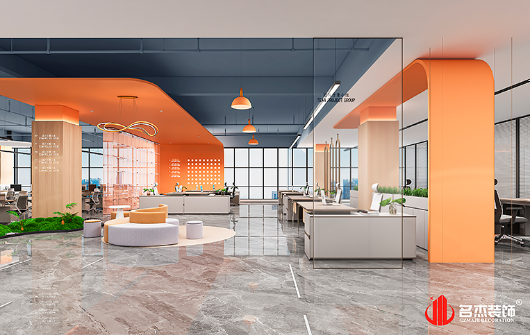办公空间的前台结合天圆地方的设计理念,弧形的背景墙,加上层层堆叠的天花造型,很好的呈现出一个独特且有品位的集团前台。而在办公区域则是选择使用企业的LOGO色融入到整体设计中,让其企业氛围更加浓郁。在高管的办公室则是采用较为沉稳的设计风格,选择有质感的材料来定制这些高管办公室装修设计空间。#广州办公室装修#
