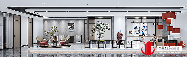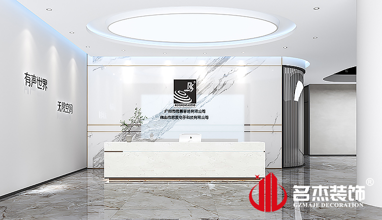 在前台设计方面,加入类似于音响网格的元素,将企业产品的元素加入到其中,增加了大家对企业的印象的同时,还能让员工感受到企业的良好形象。而在展厅部分加入了一些有设计感的,要素独特的元素,同时还能增加空间的设计感。