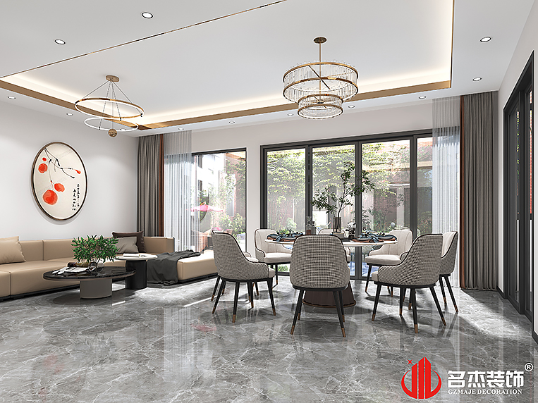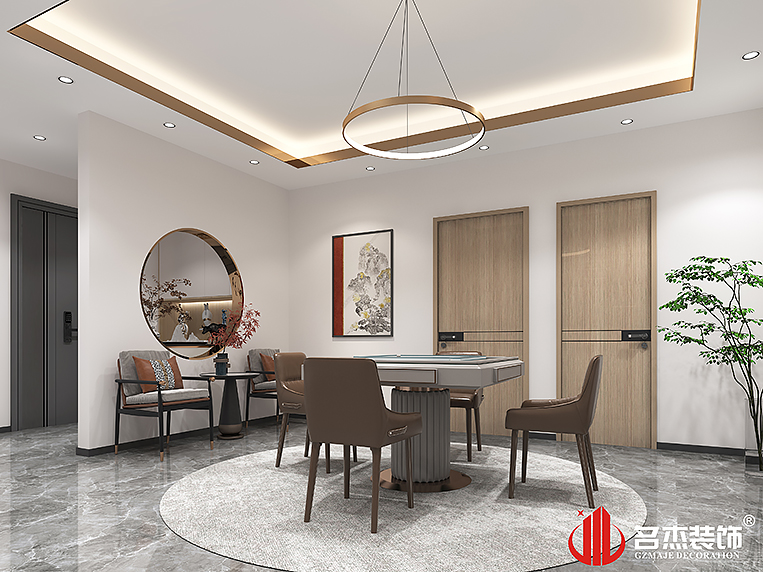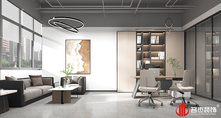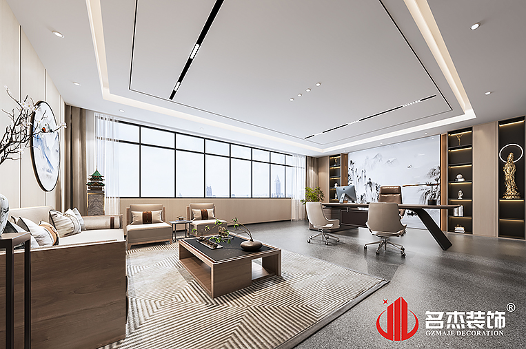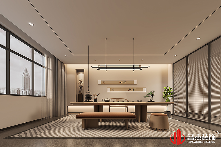 前台区域使用有规律的线条和弧形元素进行混搭,创造出一种强烈的时尚感,而这样方式也出现在茶室上面,通过不规则的设计手法,辅以灯带作为装饰点缀,展示出该企业想要突破传统的想法。同时空间设计中,对于金色的使用,也是较为大胆的,多个区域中都使用到,运用恰到好处,让空间有种轻奢的氛围。