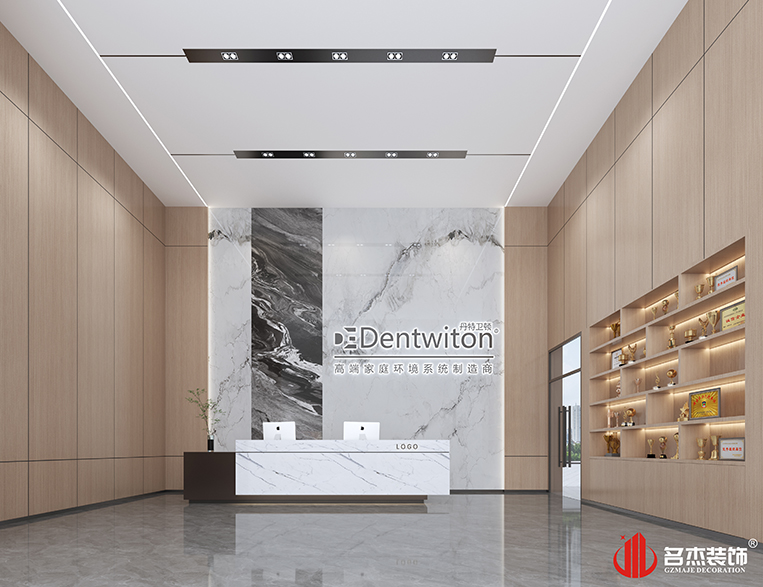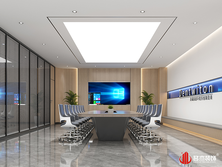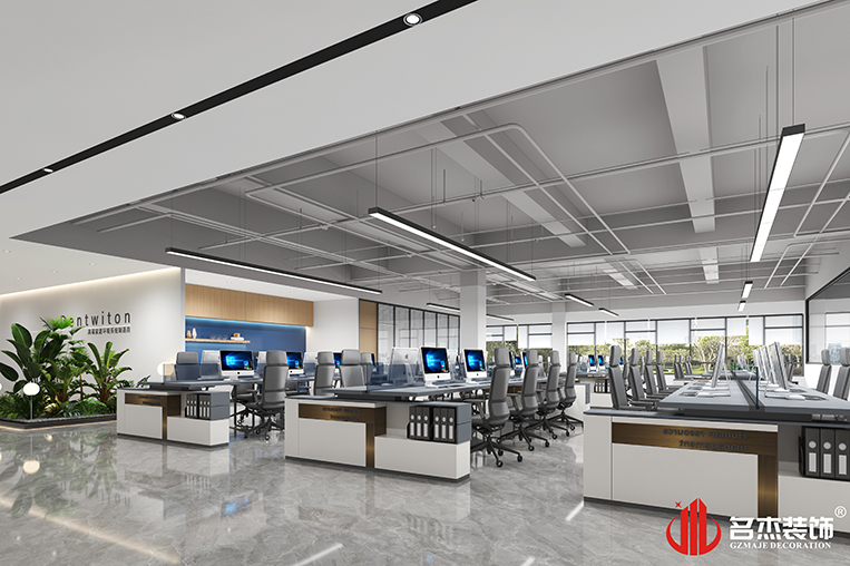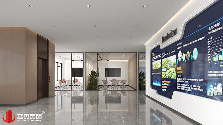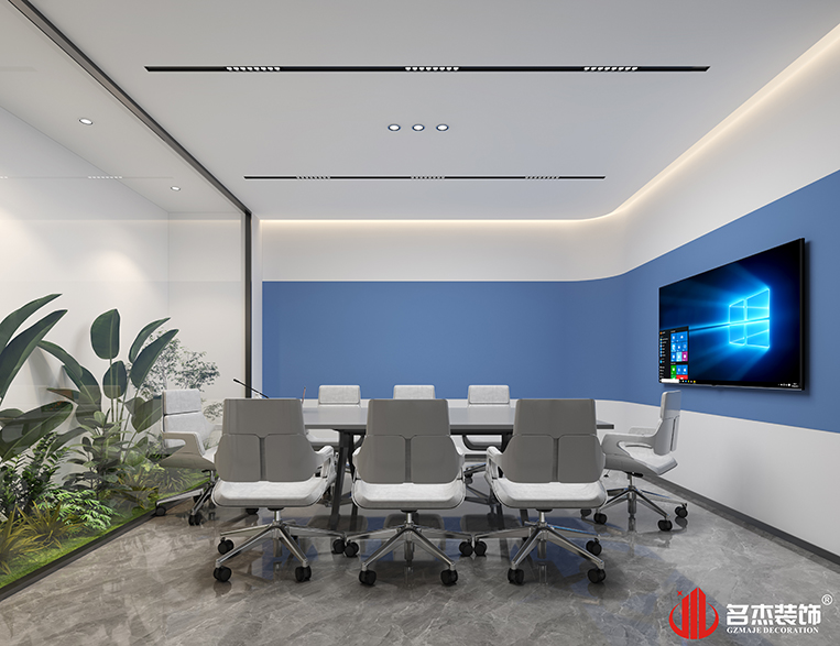 整体使用时尚简约的风格,让办公空间看起来更加简洁,同时在不同区域使用蓝色作为点缀色,给空间增添了几分科技感的同时,也让空间变得不那么单调。前台区域使用圆弧造型的吊顶,搭配弧线形的背景墙,形成一种呼应的同时,还能够增加前台空间的层次感。在办公区域使用蓝色喷漆,区别于传统的黑白灰,让空间更加具有辨识度。