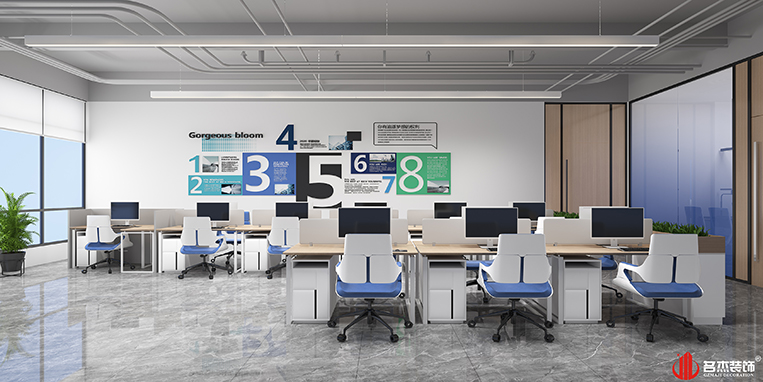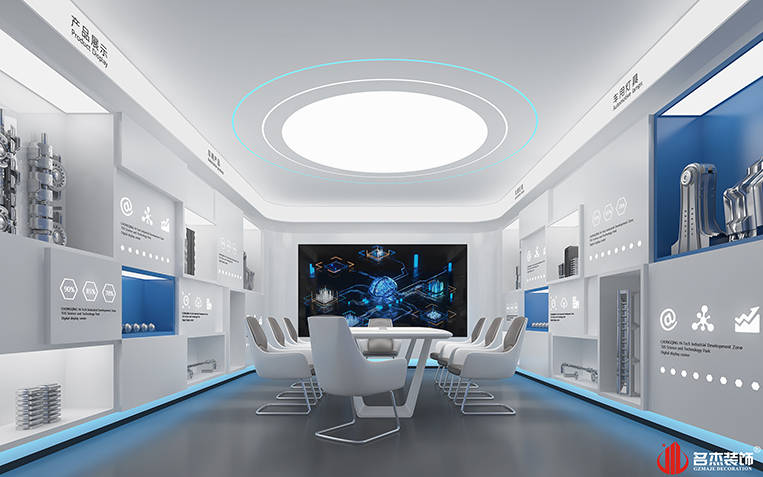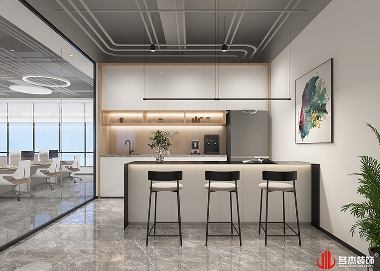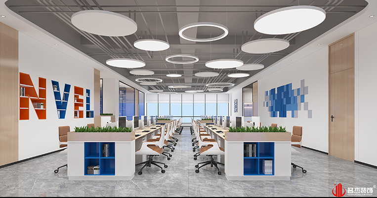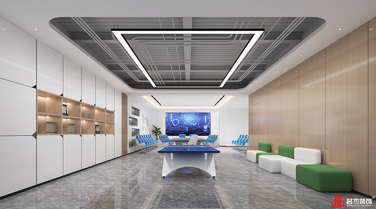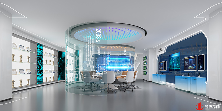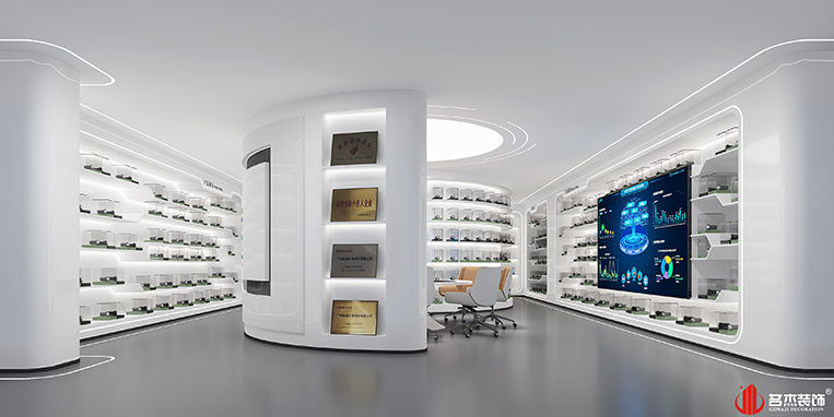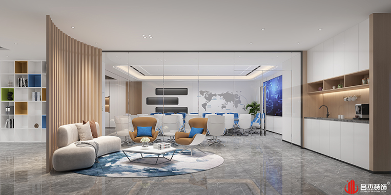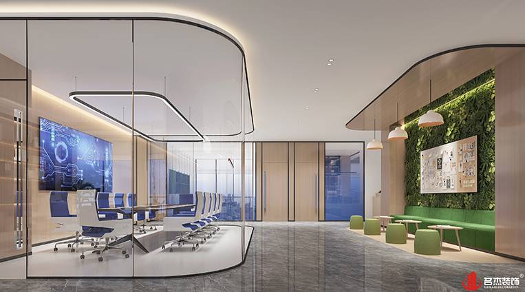 整体风格是按照时尚简约来作为空间的主打风格,加入科技元素作为点缀,让时尚简约的空间变得更具未来感,同时在空间使用企业的logo色,让空间的企业文化氛围感更加深刻,也让空间更具有未来感。在展厅区域使用弧形元素,搭配科技感,在整体设计上形成一个呼应,也突出该企业所在行业的特色,也能够给来访的客户留下深刻的印象。#广州办公室装修设计#