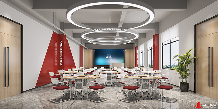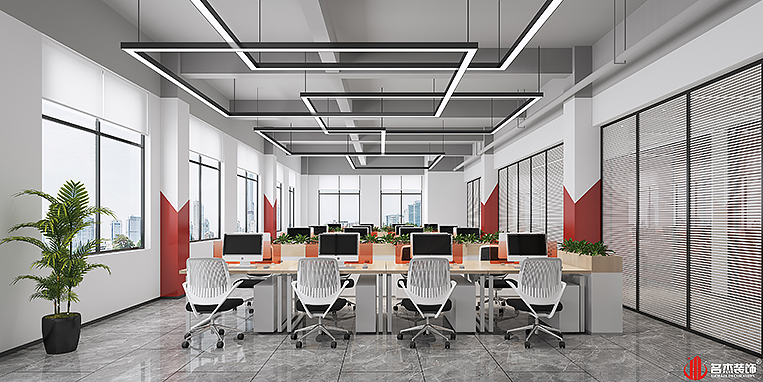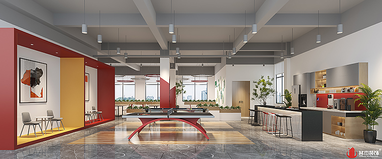 整体风格偏时尚简约风格,加入企业的LOGO色作为空间的点缀,让整体空间看起来更加有氛围感,同时还考虑到员工的身心健康,将休闲娱乐空间加入其中,搭配出一个很好的设计效果,而且这个功能的加入,也让空间增加了不少的活跃氛围。#广州办公室装修设计#