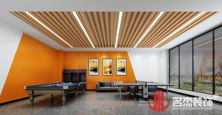 前台利用圆弧型的设计,突出时尚潮流的气息,同时在办公区域和休闲区域使用活力橙来激发员工的灵感。展厅部分则使用一些圆形的灯块来增加光线,使展厅的展出的物品得到更多的光线,从而提高展品的色彩饱和度。