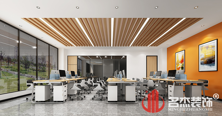 本案例是以商务短版印刷为主的印刷企业,设计师根据客户的需求以及对整体空间的把控。设计了圆弧型的前台设计,部分区域使用了活力橙作为突出的颜色,让整个空间看起来更加充满活力。