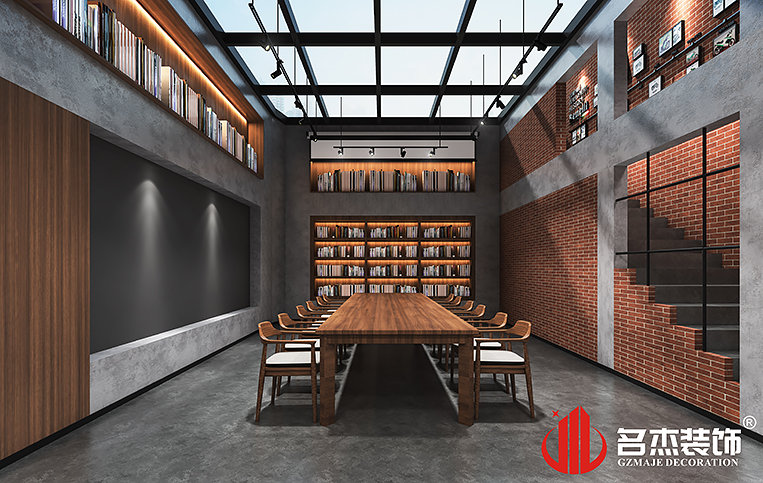整个办公室装修设计空间充满着人文气息,现代工业风的加入也让空间产生不一样的变化。前台部分足够的层高没有使用传统的搭建阁楼的做法,而是完全利用到位,发挥层高的作用,让空间看起来变得更加大气。其他空间也是如此,利用这高度,搭建的书架也物尽其用,展示出很好的效果。树纹理的书架的加入让空间也有了自然的气息,与阅读空间形成一个呼应。而在KTV区域使用大胆的配色,配以流畅的线条感,一个独特个性的空间就此诞生。