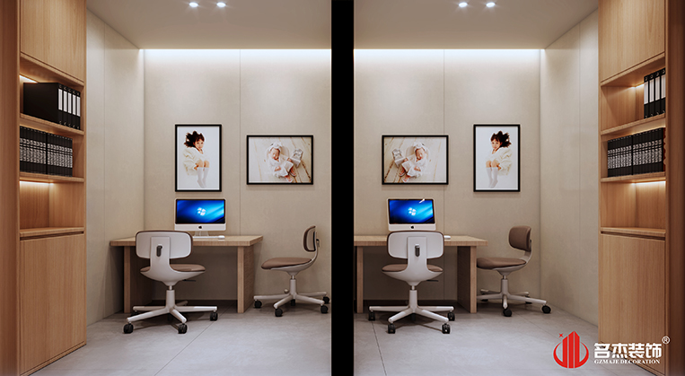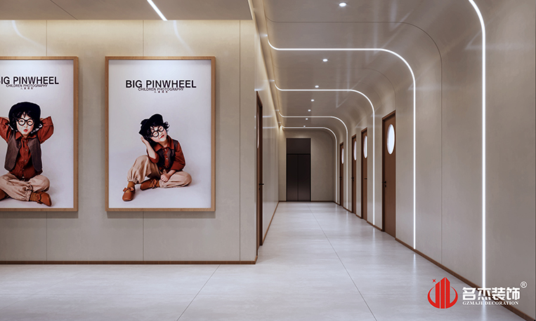 设计团队在前台区域使用比以往更多的圆弧形元素来作为办公室装修设计空间的主打设计要素,来避免孩子们碰伤的可能性,这样的做法也是能够让空间的设计感更加强烈。家具的选择上面也是选择较为百搭的白色和原木色作为主要方向,呼应空间的同时,还能够增加空间的设计层次感。而其他区域则是选择较为常规的做法,通过对材质的选择,打造出不同以往的设计风格。整体空间给人的感觉就是舒适,简约而不简单,同时也能够符合儿童摄影的定位。