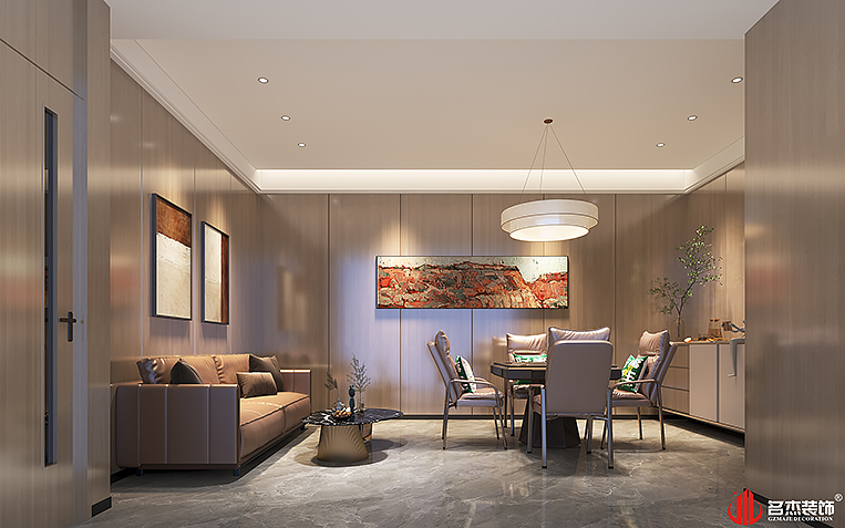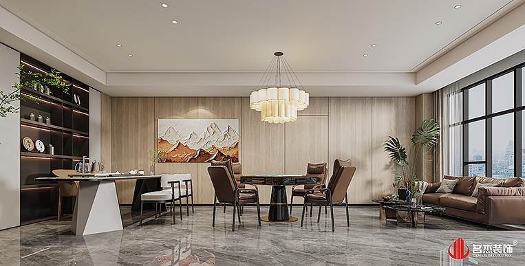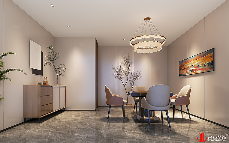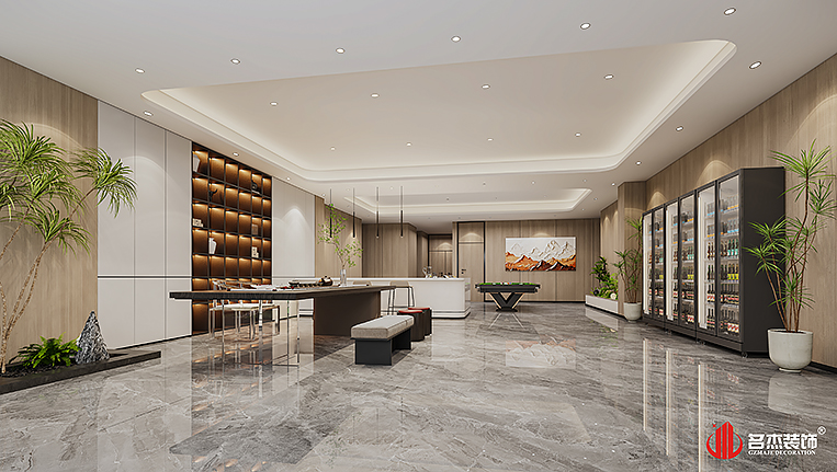 空间中的前台接待区域使用造景的设计手法,来突出风生水起的设计重点,配合前台背景墙使用的碳晶板,以及灯条作为点缀设计元素,搭配出不一样的装修设计效果。对于棋牌休闲空间来说,灯光是非常重要的元素之一,因此设计团队也着重在这方面上的设计,通过使用造型不同的灯具,为空间增加了不少的时尚潮流感。#广州公装装修公司#