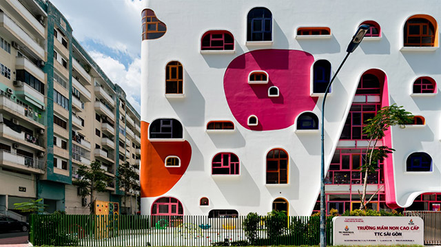 在进入二层立面内,由相同的砖形成的整体视觉感在连接空间不同功能的同时,形成了抽象的烟囱结构形象,连接品牌的整体给人一种温暖感。